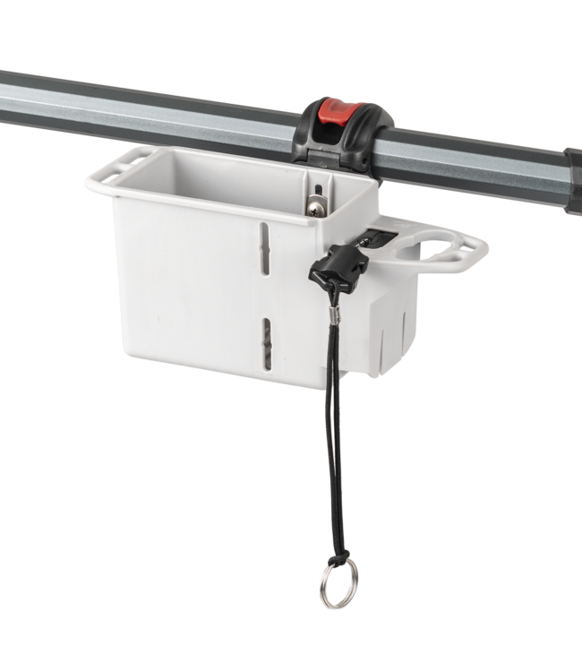 The H-Rail Mini Bin packs serious utility and is Hobie’s newest must-have accessory for kayak anglers! It’s slim and rugged design features a built-in 42” retractable gear tether, a tool holder for pliers or fish grips, four clip points for leashing down gear and raised drain channels in the floor so your gear won’t ever sit in water. Four mounting locations for its integrated H-Rail clamp allows for a variety of orientations, giving you the flexibility to mount the bin just about anywhere you’ve got an open section of H-Rail. Perfect for holding the tools you need close to hand including your VHF radio, cell phone, packs of soft plastics or a digital camera for those fishing CPR tournaments.