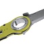 The partially serrated edge covers all your cutting needs. The 'reverse scallop' serrations facilitate severing tough fibers.