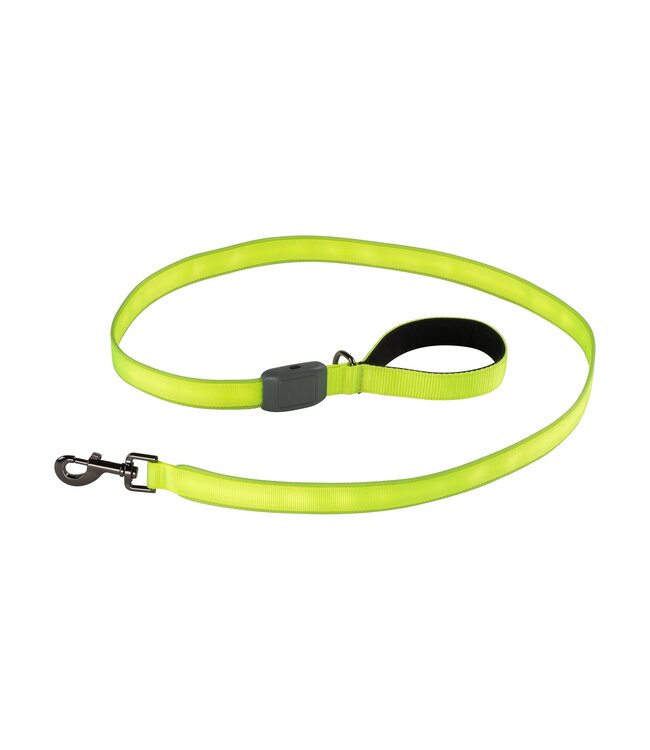 Welcome to a whole new world of nighttime visibility. Two ultra-bright LEDs send light through an integrated optical fiber to create full-length illumination so bright you need to see it to believe it. Featuring the convenience of rechargeability and easy push-button operation, this leash glows for more than six hours on a single charge. Our optical fiber technology transmits light throughout the entire length of this eye-catching leash without loss of light output and offers both constant glow and flash modes. Featuring a comfortable, padded handle with a built-in anchor point, this highly water-resistant leash is made to last.