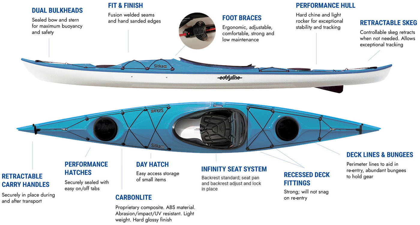 The Sitka is available in two other sizes to fit every paddler: the Sitka 145 for medium-large paddlers, and the Sitka 150, which fits large to XL-framed paddlers.